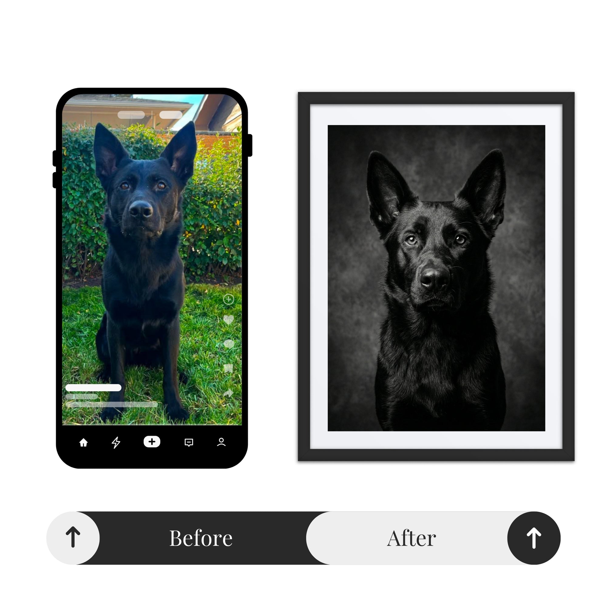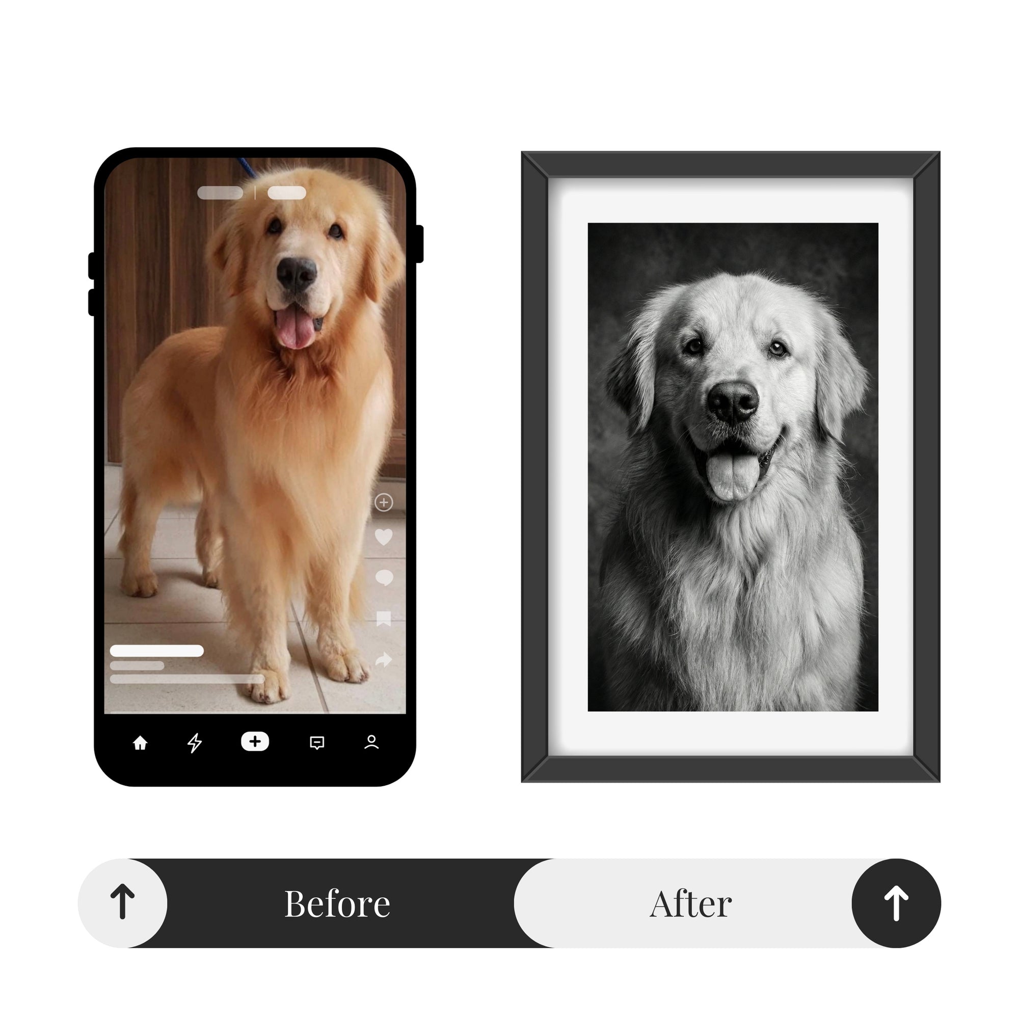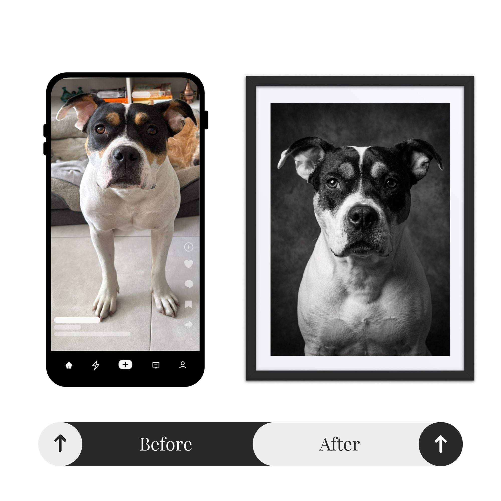 Lighting, depth, and tone refined while keeping your dog unmistakably them.