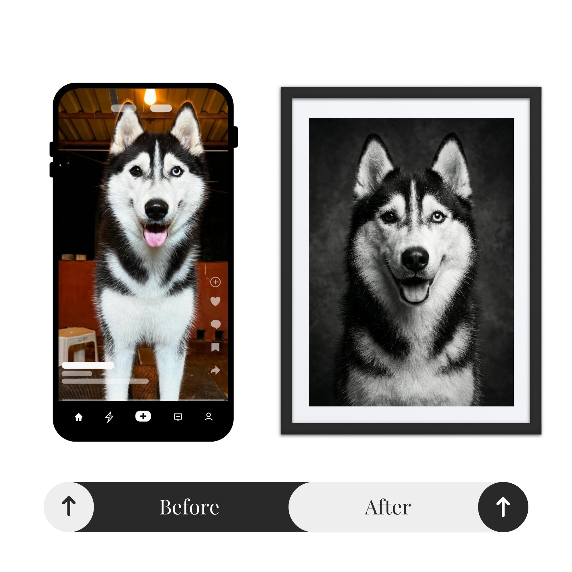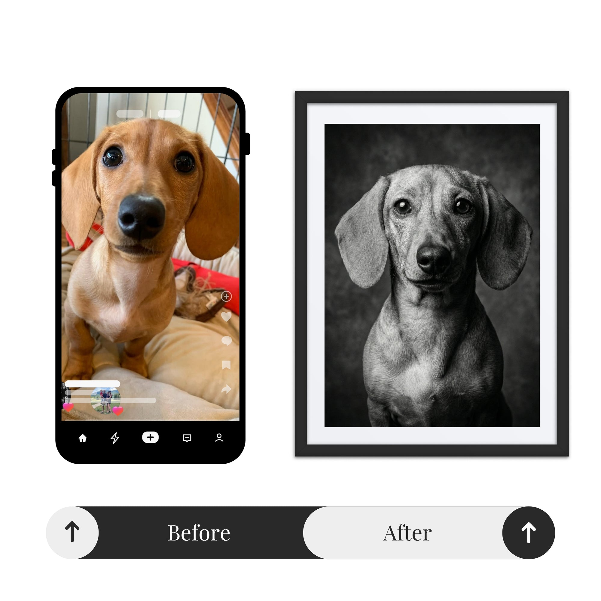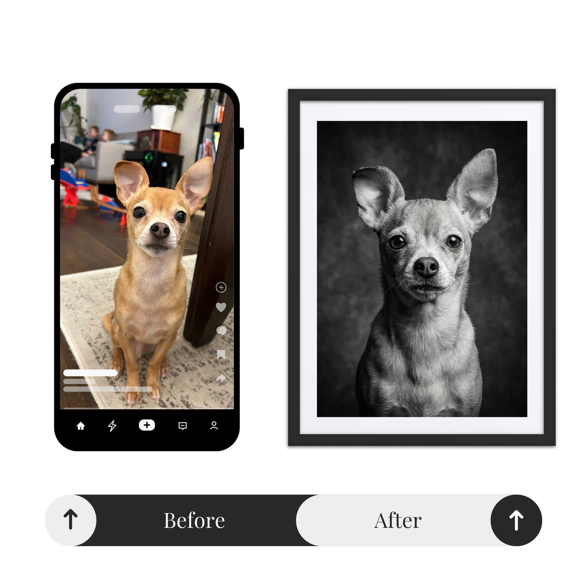 Lighting, depth, and tone refined while keeping your dog unmistakably them.