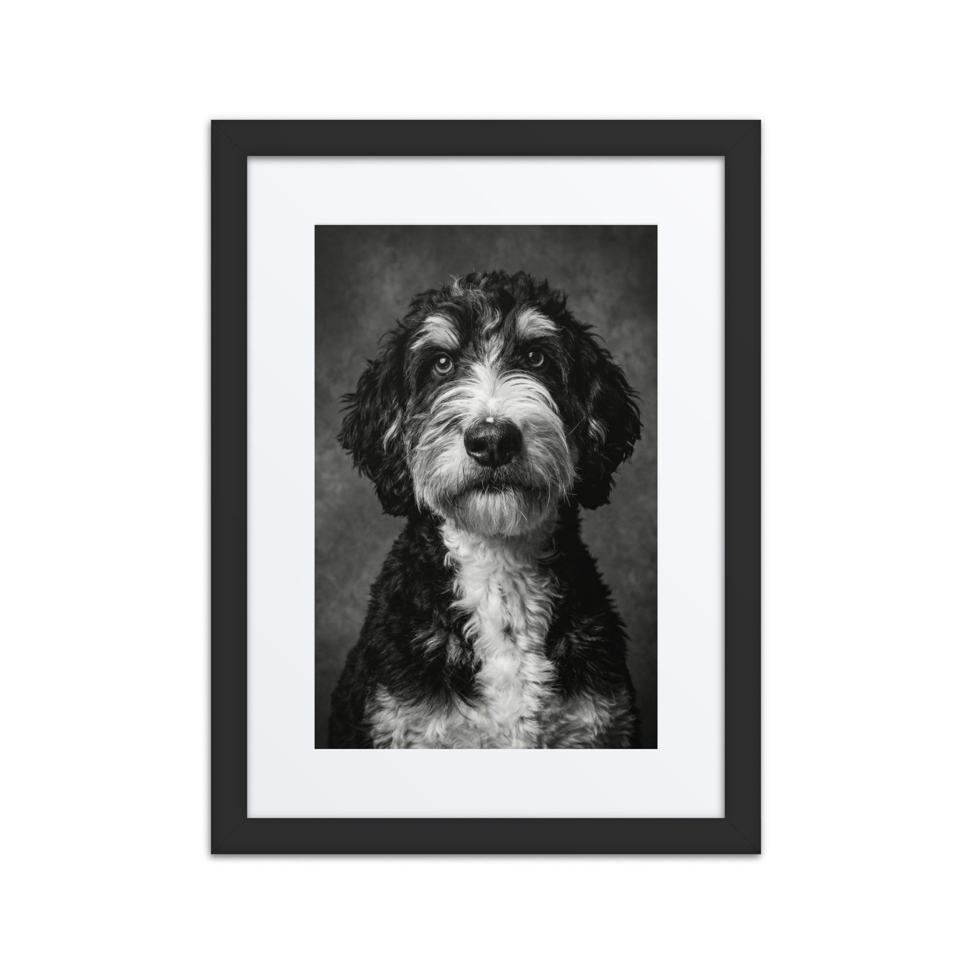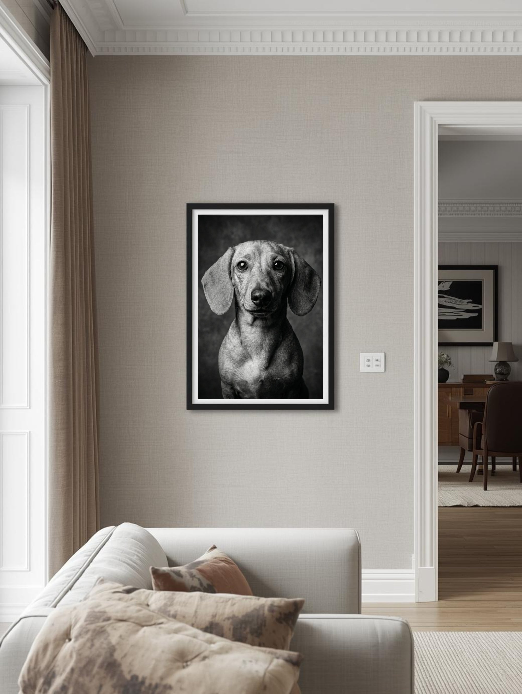 This is a professionally crafted portrait designed to look like it was photographed in a studio — created from a real photo of your dog.